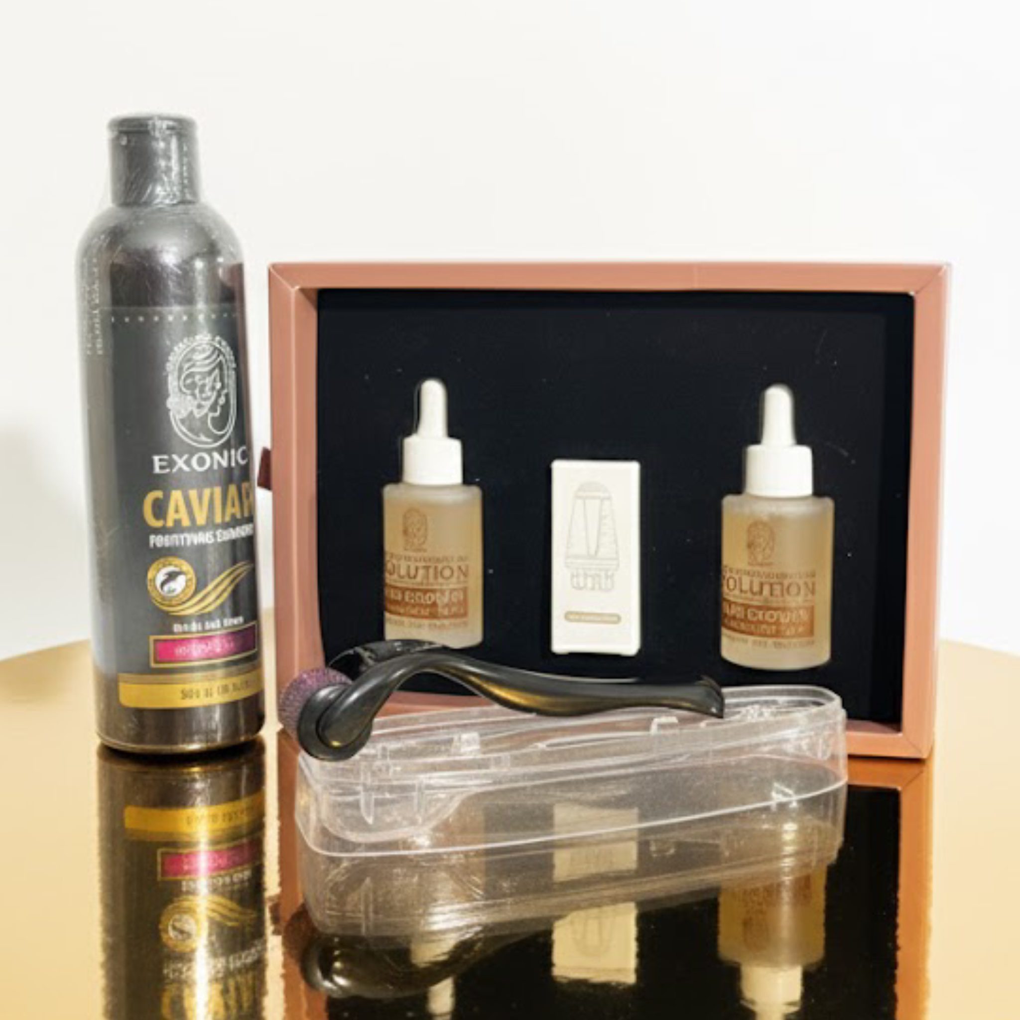 اگر به دنبال یک راهکار کامل و علمی برای درمان ریزش مو، تقویت ریشهها و رشد مجدد موهای جدید هستید، پک سهتایی EXONIC دقیقاً همان چیزی است که نیاز دارید. این پک تخصصی شامل اگزو سرم (Exo Serum)، شامپو تقویتکننده عصاره خاویار (Exonic Caviar Shampoo) و غلتک درمارولر است که با هم، یک سیستم کامل مراقبت از مو را تشکیل میدهند.